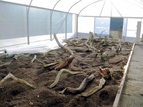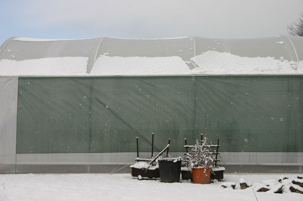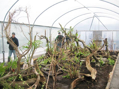I have received a futher update on the Collection. You may remember that when Mike and Arthur transplanted the Collection from the Citrus House to the Polytunnel, in January, the weather looked like this.